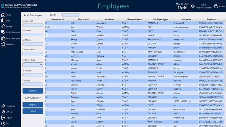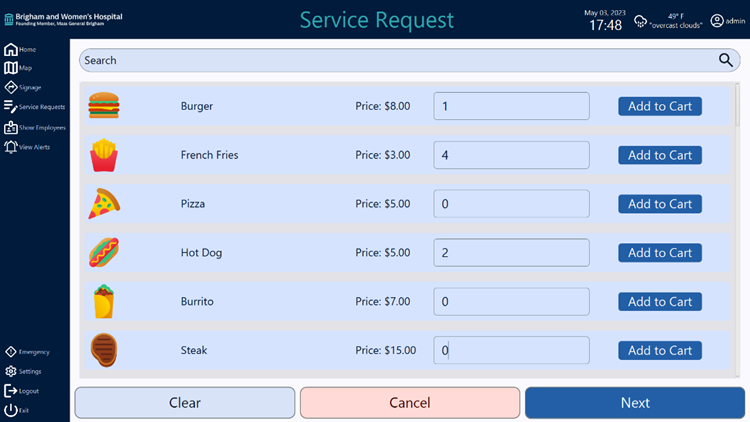 This application was developed to be put onto kiosks in Brigham & Women’s Hospital in Boston, MA. It contains a multitude of features that can be used by patients, staff, visitors and administrators to help streamline the process of visiting and working in a hospital.